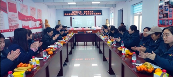 首先由工會副主席梁立彬做開場講話。他代表集團領導班子與男同胞,對大家在呵護美滿小家的同時憑借強烈的主人翁意識為公司發展所做的貢獻,表示感謝并致以敬意。公司發展歷史進程中,創業女英雄、女黨員、女骨干沖鋒在前,涌現了諸如冀英勤、溫計格、蔡四勝、張輝等多位女性榜樣,在崗女職工更是巾幗不讓須眉,在平凡的崗位上作出了不平凡的業績。2024年公司的發展主題為“項目建設攻堅年  精耕細作管理年”,希望和困難同在、機遇與挑戰并存,女同胞們要發揮女性心思細致、周到嚴謹的特點,積極學習、提高素質、爭創佳績,與公司雙向奔赴、共同成就,為實現晶牛復興夢而努力奮斗。